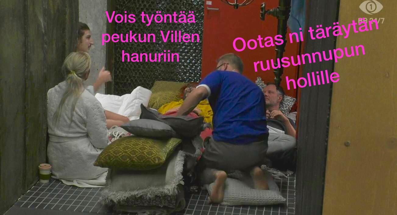 Jamppa kirjoitti:Huhupuhe kirjoitti:Jamppa kirjoitti:En oo nyt ehtinyt seuraamaan juurikaan enkä kaikki asukkaita nähnyt eilen, mutta menikö siis sinne taloon joku transiitti?