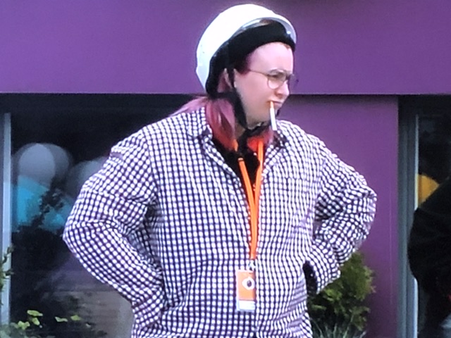 Työvaatteet kypärineen aika tyylikkäät.